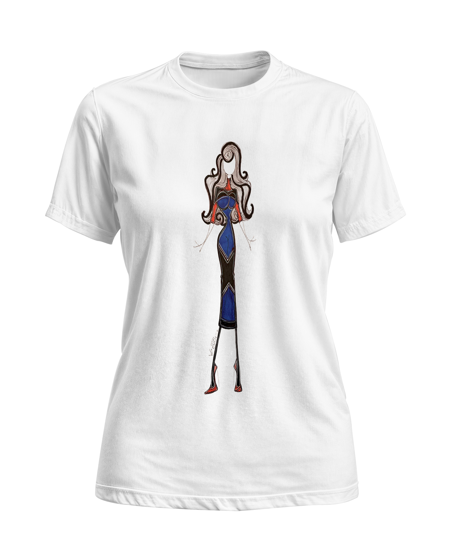 T-shirt femme élégant bleu et noir