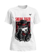 T-shirt femme Sneak Tiger à col rond: un essentiel graphique qui marie confort et caractère. Confectionné en jersey de coton doux et respirant, il offre une coupe féminine et un col rond flatteur, soulignés par un motif tigre audacieux imprimé avec des encres résistantes. Finitions soignées, tenue impeccable lavage après lavage, et style polyvalent qui s’adapte du casual au chic urbain.